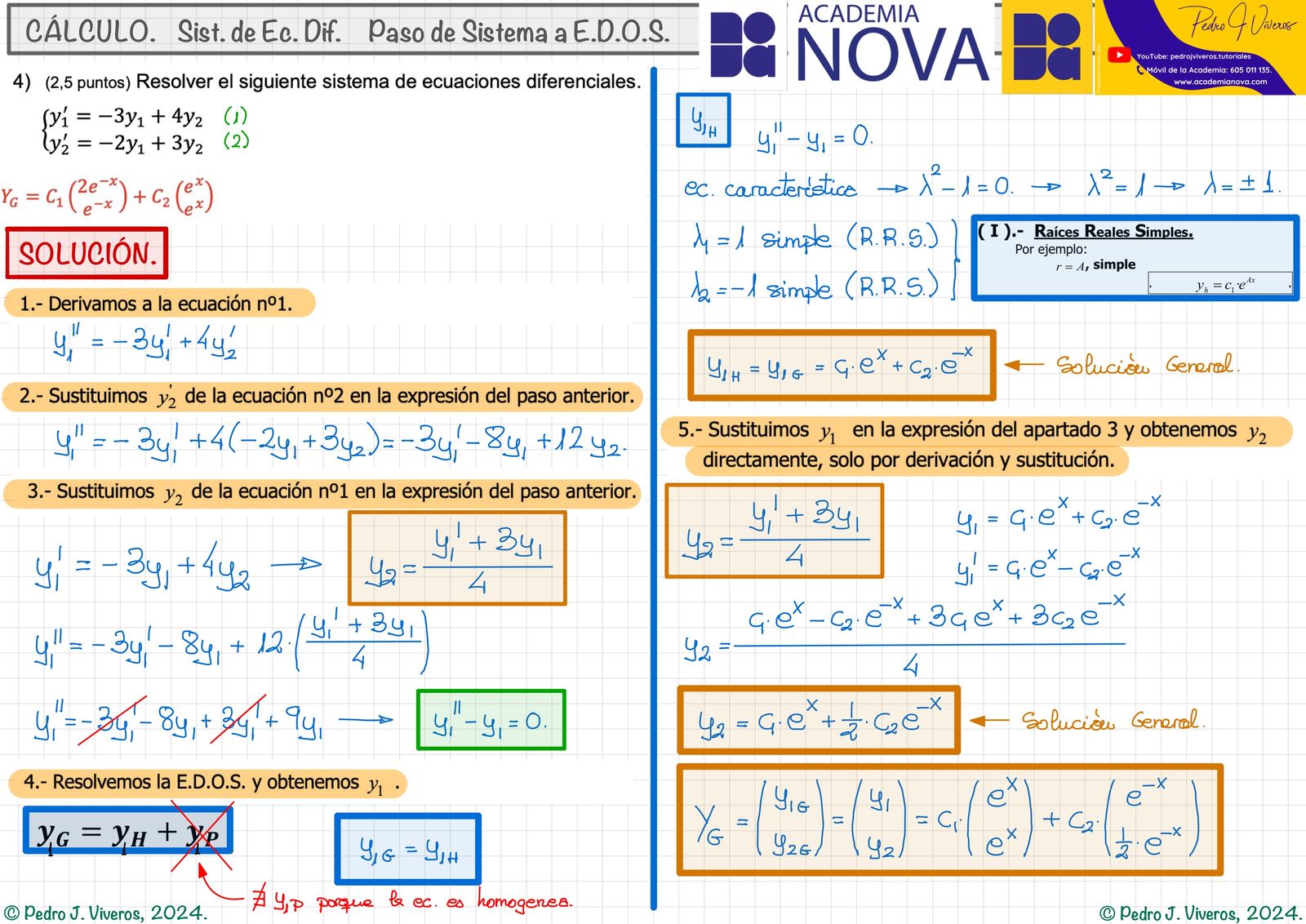 Resolución del sistema por paso a E.D.O.S. de 2º orden.