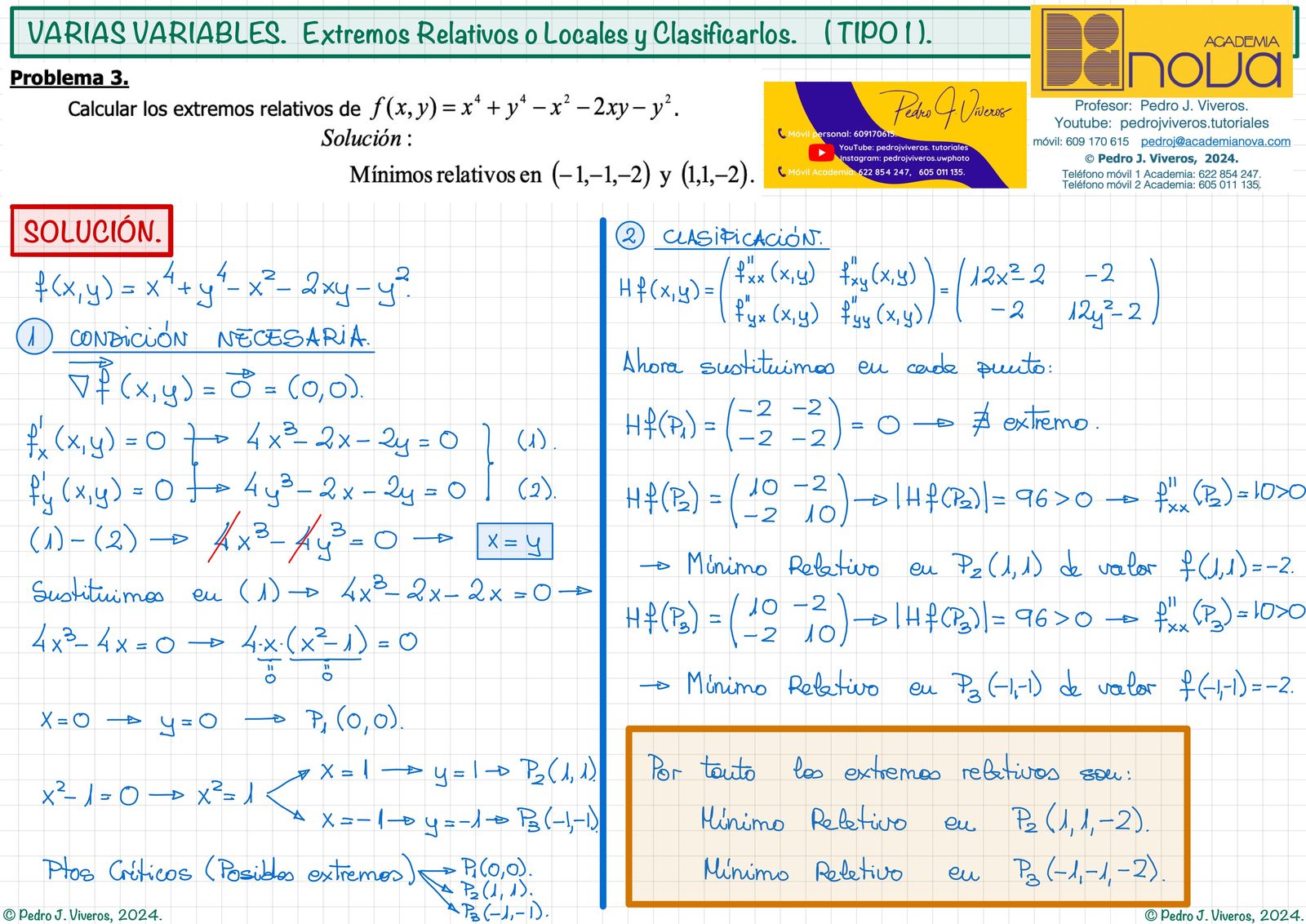 Caso 1, Raices Reales Simples. (R.R.S.) Funciones de Varias Variables. Extremos Relativos o Locales.