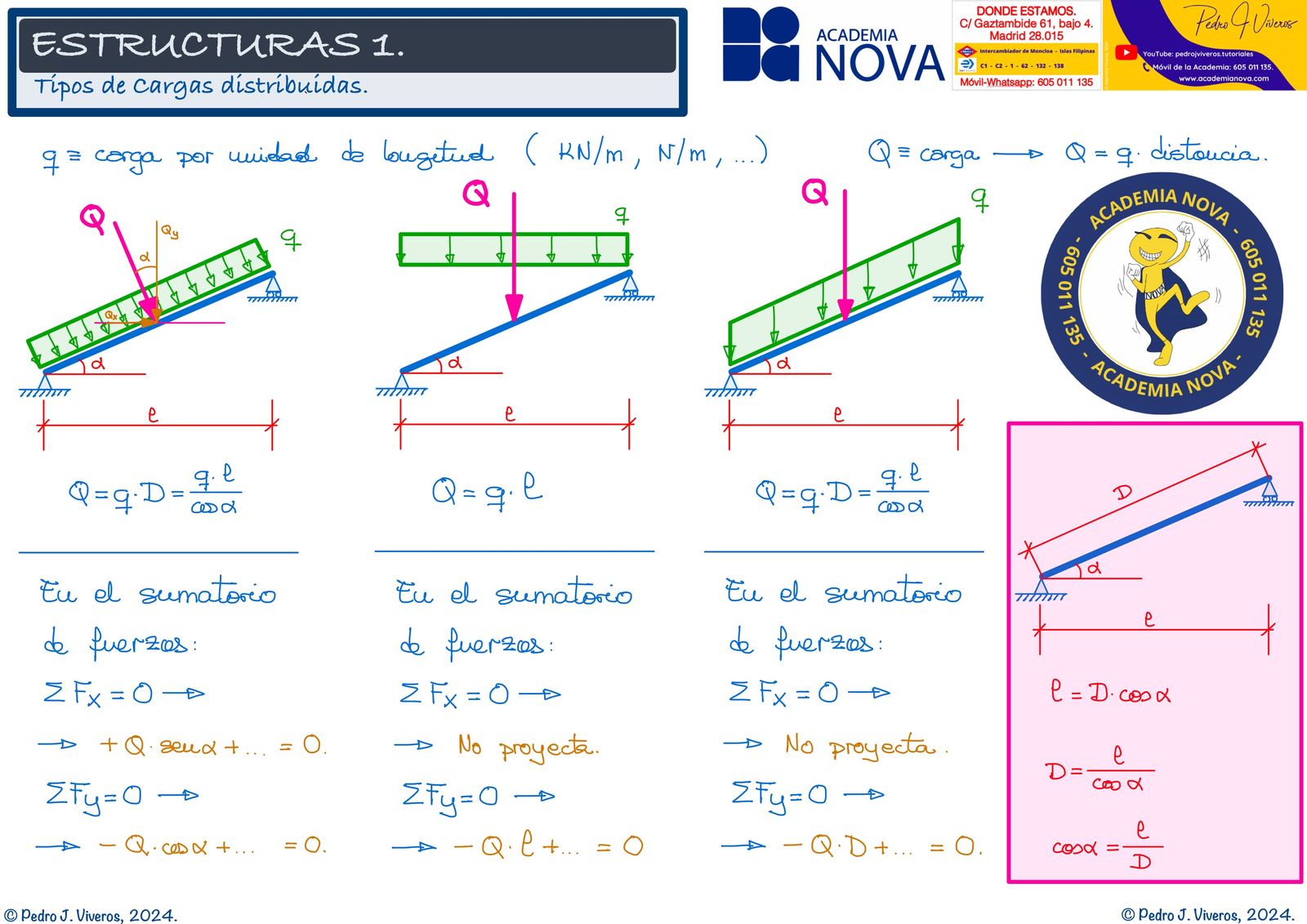 Cargas Uniformemente Distribuidas en vigas inclinadas.